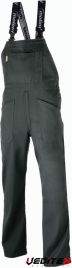 Larges brettelles élastiques, poche bavette avec fermeture glissière et poche crayon, braguette glissière, 2 poches cuisses renforcées, ouverture côtés, boutonnage réglable, 1 poche arrière et 1 poche mètre renforcées.