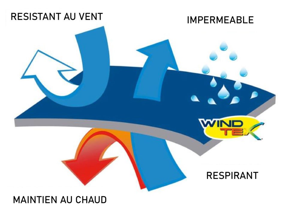 La technologie Windtex est une membrane textile innovante intégrée à certains vêtements techniques, notamment dans les domaines du sport, du plein air et du travail.